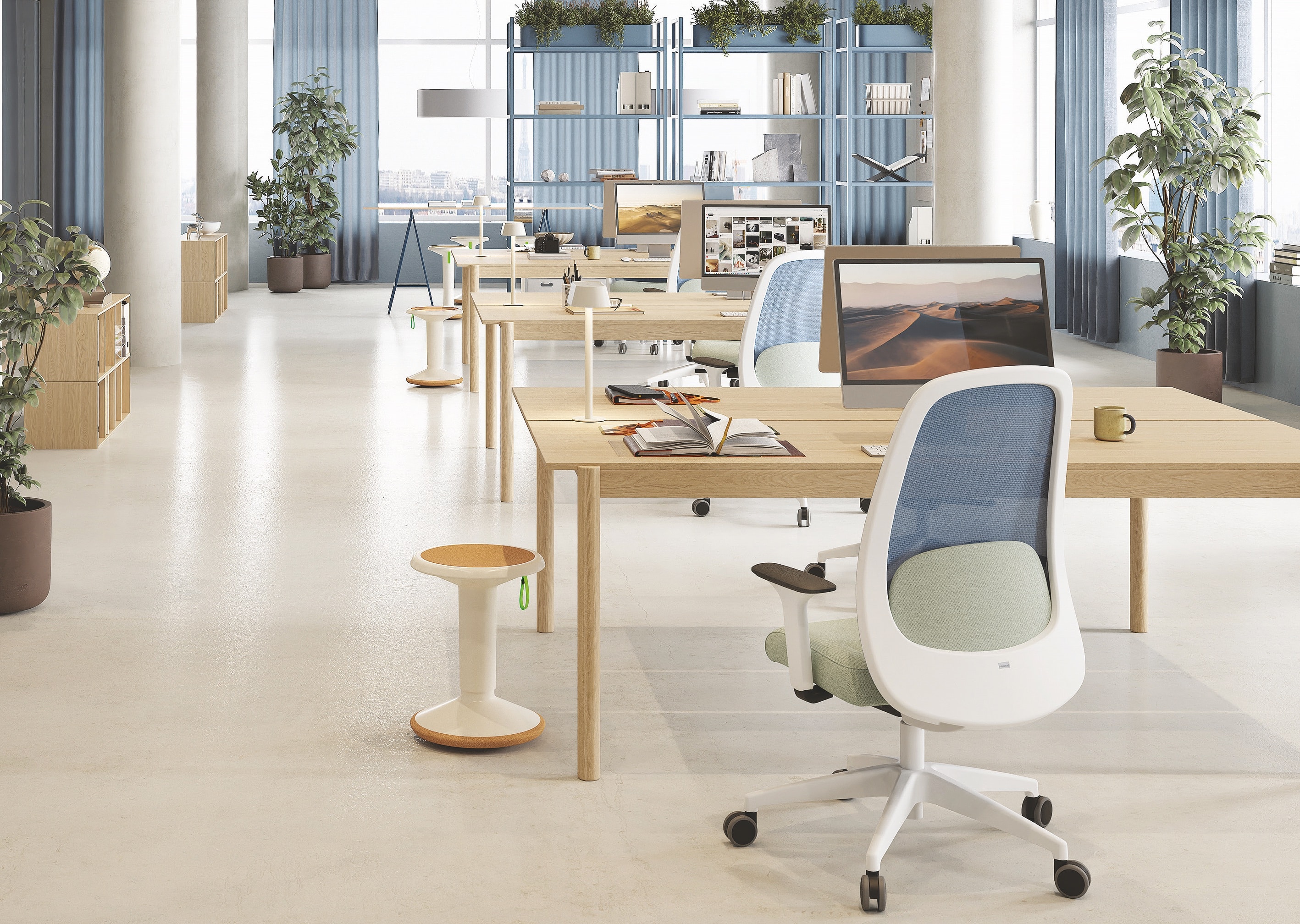 Dass Funktionalität und ergonomische Features bei einem Bürodrehstuhl nicht alles sind, hat sich längst herumgesprochen. Das Design, die Bezugsmaterialien und die Farbauswahl beeinflussen das Gesamtbild im Office und tragen ihren Teil zum Wohlfühlen bei. So können sie auch zum Faktor für eine erfolgreiche Mitarbeiterbindung werden. Der Bürodrehstuhl Interstuhl Hej IS3 dürfte sich mit seinem dezenten Design, das den minimalistischen Scandi-Chic aufnimmt, in zahlreiche Büroumgebungen einfügen. Die abgerundeten Kanten, die leicht geschwungene Rückenlehne und die solide Polsterung lassen bereits erahnen, dass der Sitzkomfort gefallen könnte.